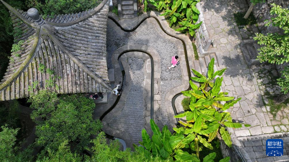 游客在滁州市琅琊山景区醉翁亭景点游玩(2025年7月15日摄,无人机照片)。新华社记者 黄博涵 摄
