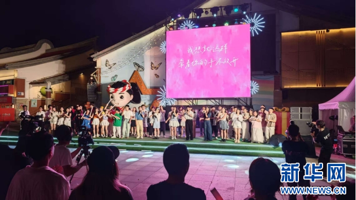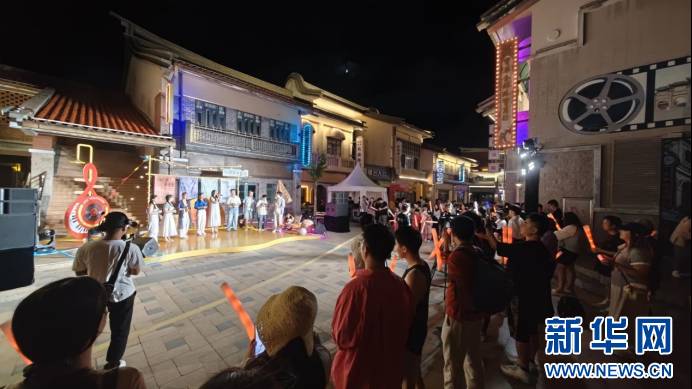 8月29日是我国传统节日“七夕”。当晚,平潭澳前台湾小镇里,来自国内外的阿卡贝拉演出团体,在街头巷尾唱响天籁之声,吸引了众多游客驻足观看。新华网刘默涵摄