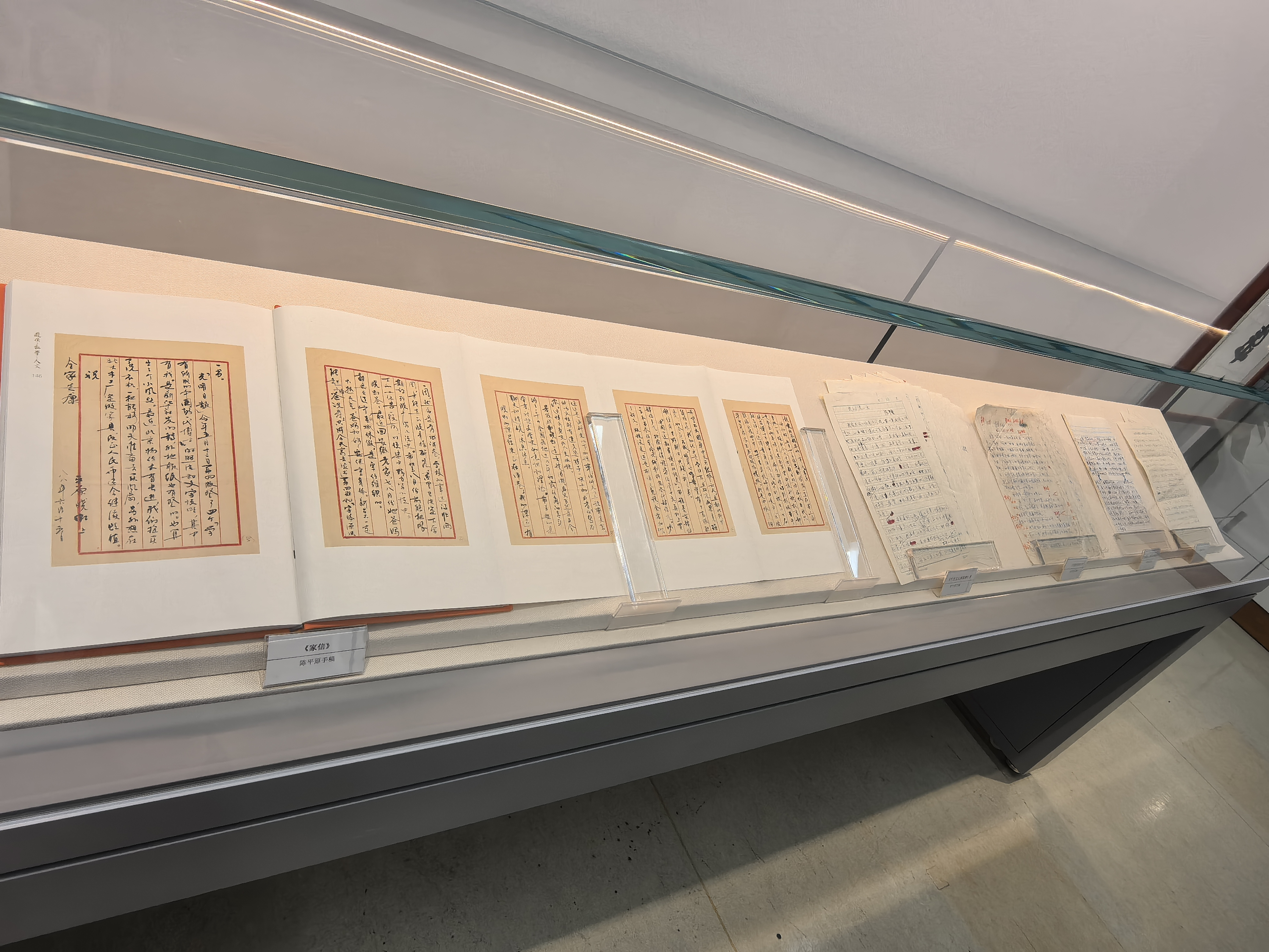 踏入书房,左侧书架上陈平原先生亲手挑选的签名书格外醒目,每册书籍背后都关联着学界友人的交往故事或深刻的学术探讨,构成一座立体的“学术朋友圈”。右手边展架收藏着夏晓虹父亲珍藏的诸多签名本,泛黄纸页间沉淀着跨越时代的书香记忆。为实现理想陈列效果,陈平原亲自摆放书籍,反复斟酌以达最佳效果。书房中还复刻了一处家中原貌,原样保留两位教授的工作场景,书桌上的笔筒由陈平原弟弟陈草原亲手烧制,简约沙发与茶几上堆放着各类书籍,完全还原两位学者家中的日常场景,读者可沉浸式感受学者“以书为伴、以学为乐”的治学状态。