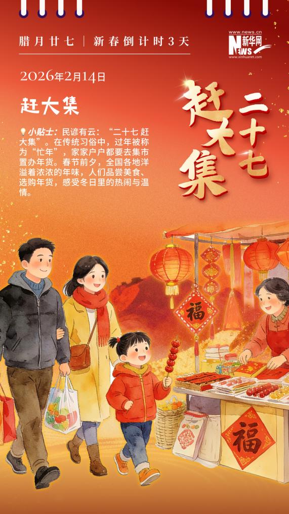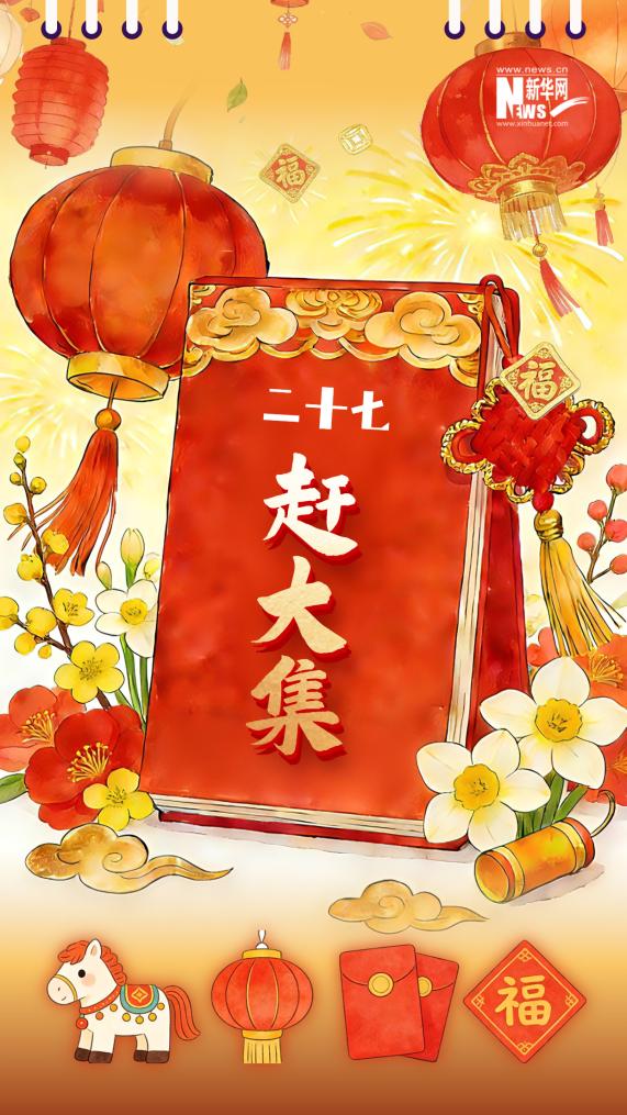 AI海报|新春倒计时日历:二十七 赶大集-新华网