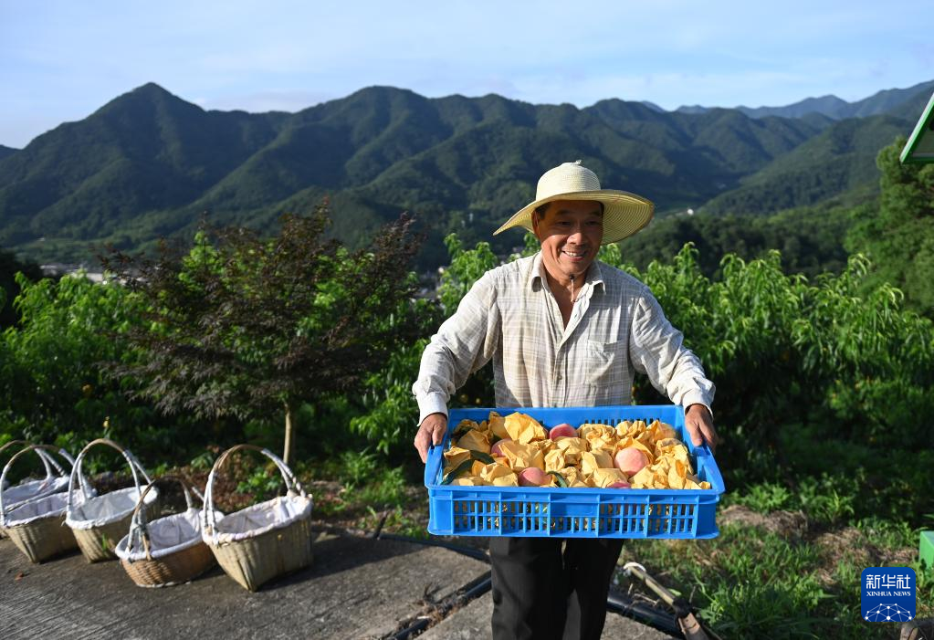 近日,“中国水蜜桃之乡”浙江省宁波市奉化区水蜜桃成熟,当地果农忙着采摘上市。奉化水蜜桃栽培历史悠久,水蜜桃产业已形成了早、中、晚熟相配套的30个主要栽培品种体系,种植面积超过5.3万亩,成为当地农民增收致富的支柱产业。