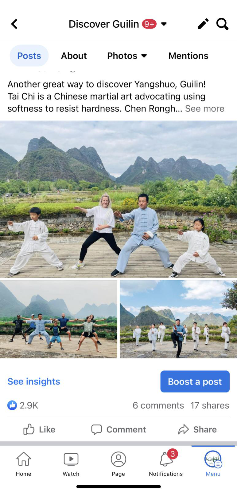 作品《阳朔民宿老板教外国人太极拳传播中华文化》在Facebook刊登