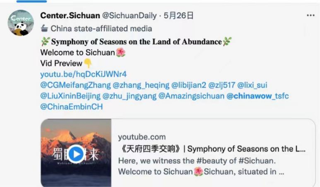 《天府四季交响》双语形象片在四川国际传播海外媒体矩阵“Center”上线后,引发外网的热烈反响。