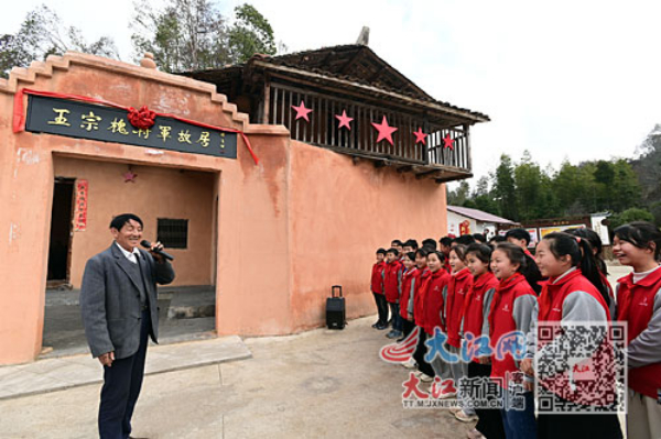 张包春在双桥镇柏树村新时代文明实践站给学生们讲红色故事。特约通讯员 邓龙华摄