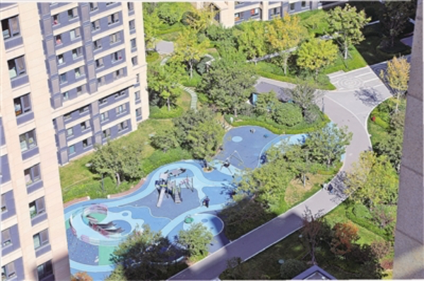 小区内设有滑梯、秋千等设施供儿童玩耍。