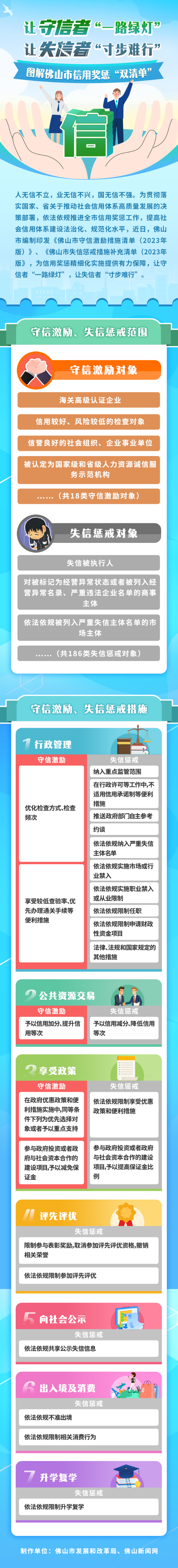 为不断拓展与创新信用应用工作场景,近日,佛山市编制印发《佛山市守信激励措施清单(2023年版)》《佛山市失信惩戒措施补充清单(2023年版)》(以下简称“双清单”),让信用监管按下“优化键”,营造良好的信用环境,并规范各部门的信用惩戒行为,确保“清单之外无惩戒”。