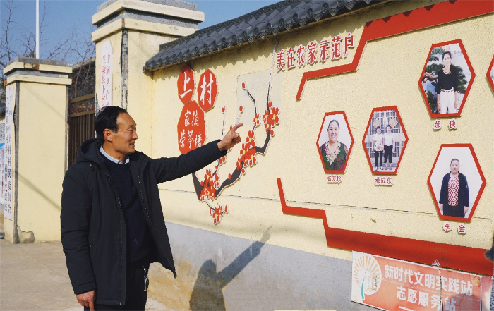 2月14日,上村村党支部书记、主任王加福在介绍上村村农家示范户。