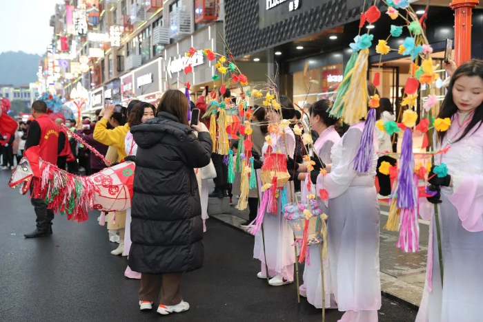 玉山县将军庙商圈步行街正在举行紫湖板灯表演 吴梦玲 摄