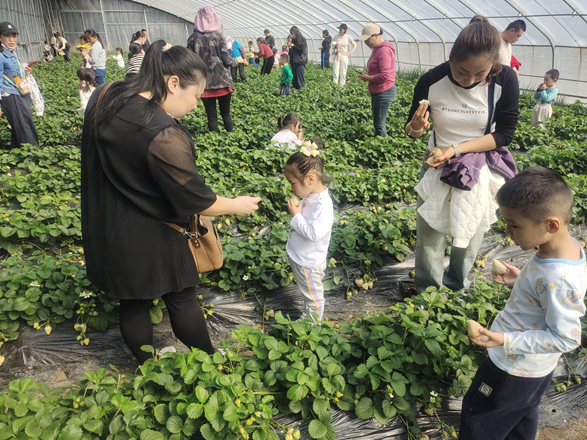 五一期间观众带孩子在莱西采摘草莓