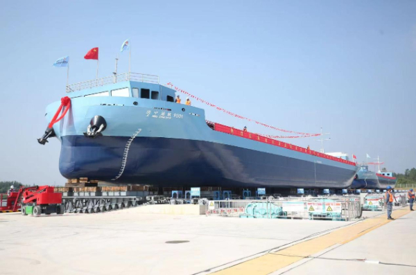 近日,京杭运河首批新能源智能商品船在山东邹城顺利下水。新下水的两艘新能源船舶,分别为90米LNG动力船和67.6米电动力船,由山东新能船业有限公司和武汉理工大学共同研发生产。新船舶与传统的内河船舶相比,船阻降低6%,节能3%,污染物排放量降低90%以上,碳排放降低15%。跟燃油船相比,新能源船舶百公里可节约燃料费3000元。该项目实现批量生产后,年可建造1000-2000吨级内河新能源船舶400艘,年销售收入33亿元,带动船舶锂电氢电、电力推进系统等临港产业集聚发展。