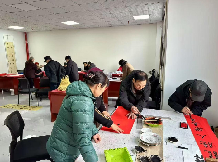 社区党群服务中心在春节前开展“义写春联”活动。(李广渊 摄)