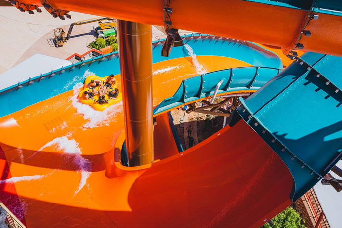 13台(套)人气TOP级游乐设备、26条滑道、35个高品质水上娱乐项目,全方位覆盖了全龄段游玩需求。国内首台激流过山车凭借其独特的设计和强大的动力,在高速滑行中带来极速离心力挑战,让追求刺激的游客心跳加速,尖叫连连;超级大喇叭等“尖叫”指数同样不容小觑,当游客坐在特制的浮筏中随着水流在喇叭状滑道内摆动,水上冒险之旅就此开启。此外欢乐水寨、迷你滑道、奇趣水屋等儿童友好设施,以高趣味、强互动守护亲子时光。造型可爱的喷水设施、轻缓的水流,不仅让儿童可以嬉笑玩耍,家长们也能参与其中,享受温馨的互动时刻。