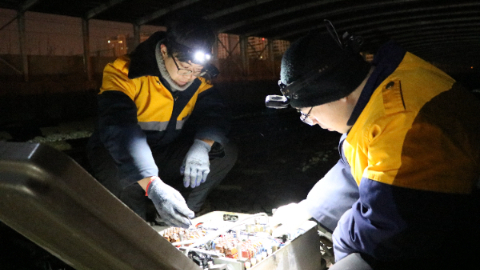 于力在查看道岔缺口视频系统后,利用班前会对当晚的作业内容进行重点提示。