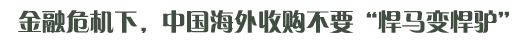 | 在全球化的今天,中国企业进行海外收购,外资到中国进行收购,都是很寻常的事。可是,由于不熟悉国际市场规则,没能充分利用各种资源保护自身合法权益,中国人总是被当成“冤大头”和“收破烂”的。要想改变这种局面,吸引培养人才的工作很重要。 [详细] | | 回首当年,明基收购西门子手机,一分钱未出,西门子还倒贴2.5亿欧元,可一年之后,明基在赔了8亿欧元后无奈地承认了失败。这是前车,腾中当引以为鉴。我们的企业,在迈向全球化的过程中,步子真该更稳些! [详细] | | 中国要想在海外并购中少吃亏,最紧迫的任务就是发现并重用能在国际市场上打胜仗的领军人才。同时,中国也要充分利用自身资源,特别是要在国外企业在中国收购和中国企业在国外收购之间,建立起明确的对等关系,确保互利互惠,免得中国成为在国内给外资以超国民待遇,在国外却处处受人刁难的“凯子”。腾中重工如能让“悍马”起死回生,当然是最好的结局。这样不仅能证明中国民营企业的眼光和经营能力,还会多少改变一下外国人对中国“此地人傻、钱多,速来”的观感。 [详细] |