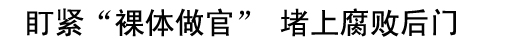 “裸体做官”是有计划的腐败,和一般的贪污受贿比较,这种腐败危害更大,产生的社会影响也更恶劣。 “裸体做官”者有两个特点:一是隐蔽,他们精于手段,深谙“明修栈道、暗渡陈仓”之道,潜伏在黑暗的角落里,将一笔一笔财产转移国外;二是身无牵挂,一旦有风吹草动,就“逃亡”国外与早已“转移”的妻儿团聚,享受无法无天的生活。 因此,要彻底整治“裸体做官”,必须让阳光照亮每一个可能藏污纳垢的角落,让“裸体做官”者无处藏身,让贪污腐败无处藏身。