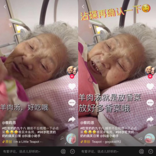 但凡喜欢刷抖音的人,一定刷到过百岁“吃货奶奶”的视频,老年“少女”开开心心喝可乐、奶茶、白酒,吃火锅、烧烤、串串、汉堡、鸡腿、雪糕……因为反差萌,吸引了不少铁杆小粉丝,如今她的抖音粉丝近700万,获赞过亿。