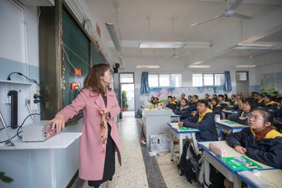 图片中的场景是一堂物理课。在很多人看来,这是再普通不过的课,老师做物理实验演示,学生认真听课。