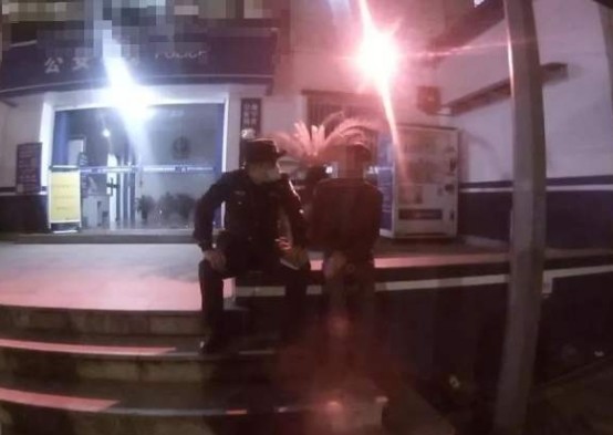 深夜的灯光下,一男子因生活遇到困难,坐派出所门口痛哭,值班民警以朋友的身份与他聊天,等男子心情好些后用警车送他回家。