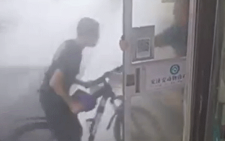 在辽宁沈阳,暴风雨突然来临,“风力估计有8-10级”,一店主急忙主动扶着门,让街上的行人进店躲避,他说,自己也没多想,就想着能多帮一点是一点。