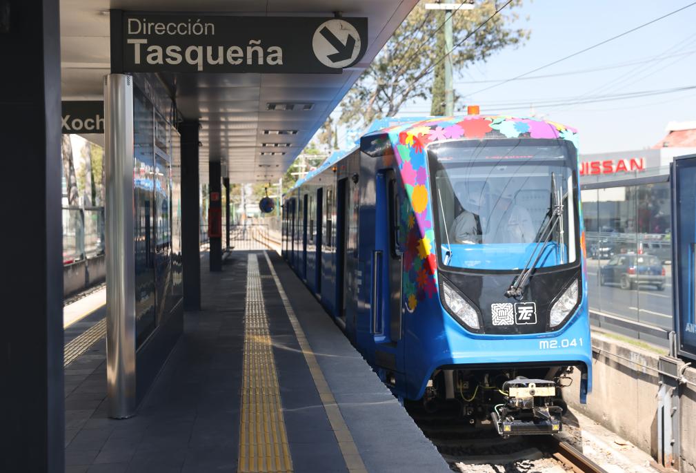 2024年1月3日,在墨西哥首都墨西哥城,轻轨列车驶入一处轻轨站。中国中车为墨西哥首都墨西哥城研制的轻轨列车3日投入商业运营,这是中国制造的轻轨列车首次服务墨西哥城公共交通系统。新华社记者李梦馨摄