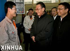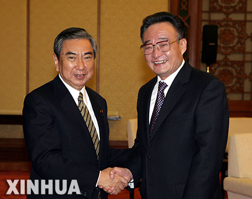 1月16日,全国人大常委会委员长吴邦国在北京人民大会堂会见塔吉克斯坦总统拉赫莫诺夫。 新华社记者 饶爱民 摄