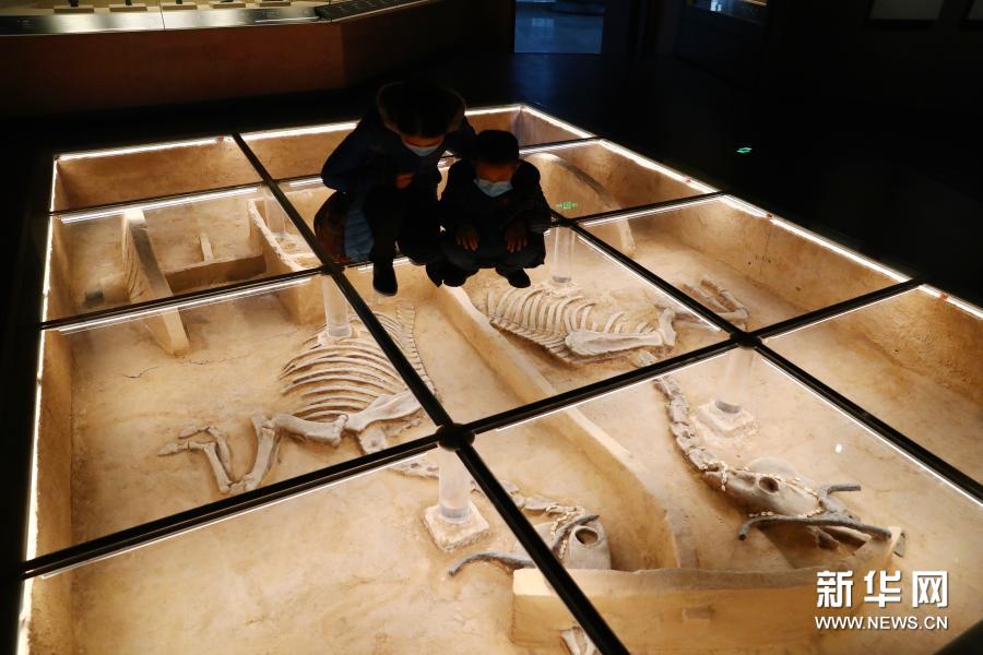 2021年1月2日,参观者在山东省滕州市博物馆内参观。新华社发(李志军 摄)