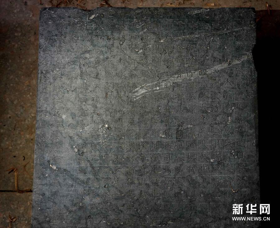 这是隋代汉白玉石棺床墓内出土的墓志(2020年12月24日摄)。新华社记者 李安 摄