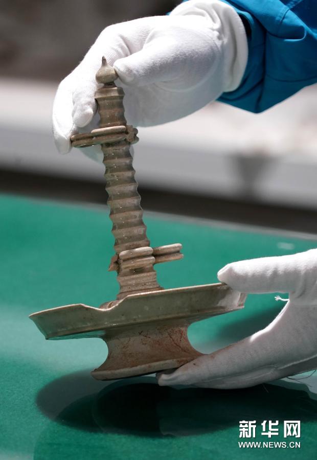 这是隋代汉白玉石棺床墓内出土的瓷烛台(2020年12月24日摄)。新华社记者 李安 摄