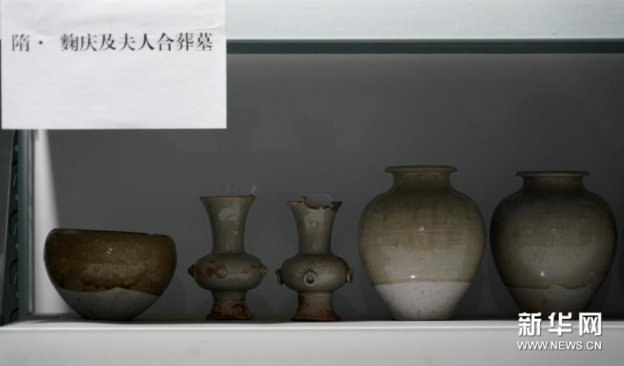这是隋代汉白玉石棺床墓内出土的部分瓷器(2020年12月24日摄)。新华社记者 李安 摄