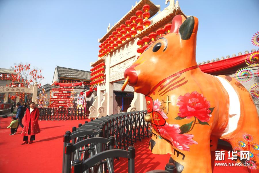 1月13日,游客在山东省青岛市即墨古城游览。随着春节临近,山东省青岛市即墨古城张灯结彩,洋溢着喜庆的年味。新华社发(梁孝鹏 摄)