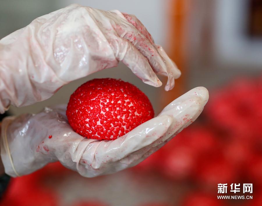 1月15日,在玉屏侗族自治县田坪镇白果村,村民制作红粑。新华社发(胡攀学 摄)