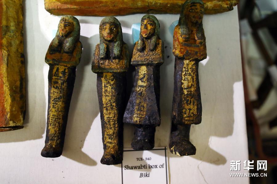 这是1月17日在埃及吉萨省塞加拉地区拍摄的出土文物。新华社发(艾哈迈德·戈马摄)
