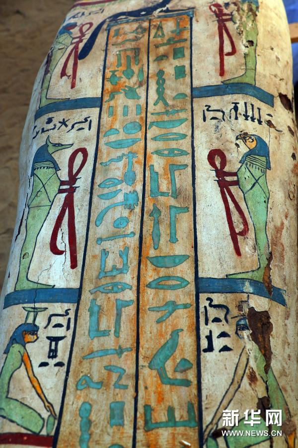 这是1月17日在埃及吉萨省塞加拉地区拍摄的出土木棺。新华社发(艾哈迈德·戈马摄)
