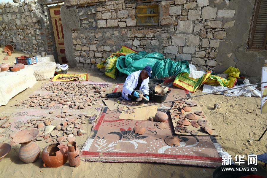 1月17日,在埃及吉萨省塞加拉地区,考古工作者在现场工作。新华社发(艾哈迈德·戈马摄)