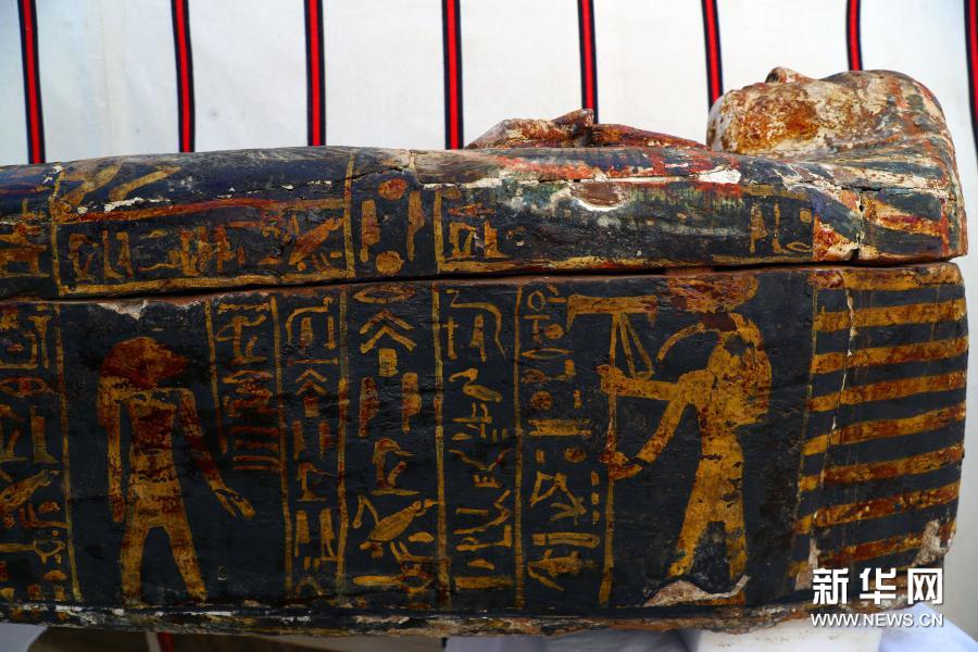 这是1月17日在埃及吉萨省塞加拉地区拍摄的出土木棺。新华社发(艾哈迈德·戈马摄)