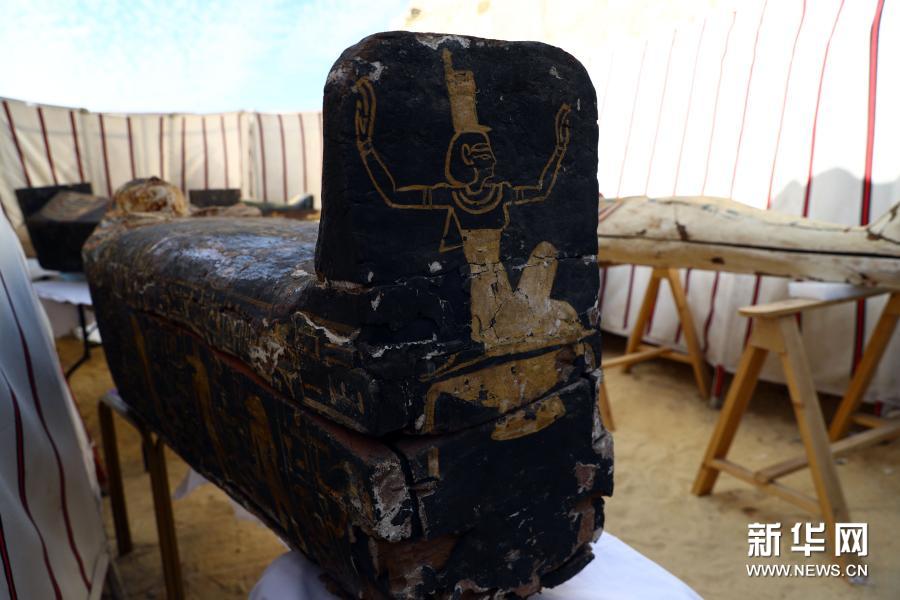 这是1月17日在埃及吉萨省塞加拉地区拍摄的出土木棺。新华社发(艾哈迈德·戈马摄)