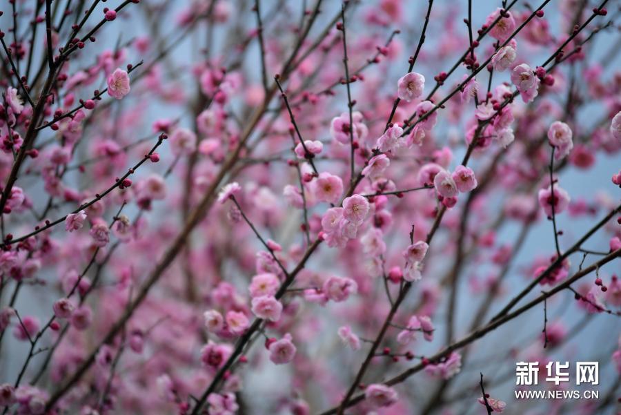 1月20日拍摄的湖北省恩施土家族苗族自治州宣恩县贡水河国家湿地公园里绽放的梅花。当日是“大寒”节气。新华社发(宋文 摄)