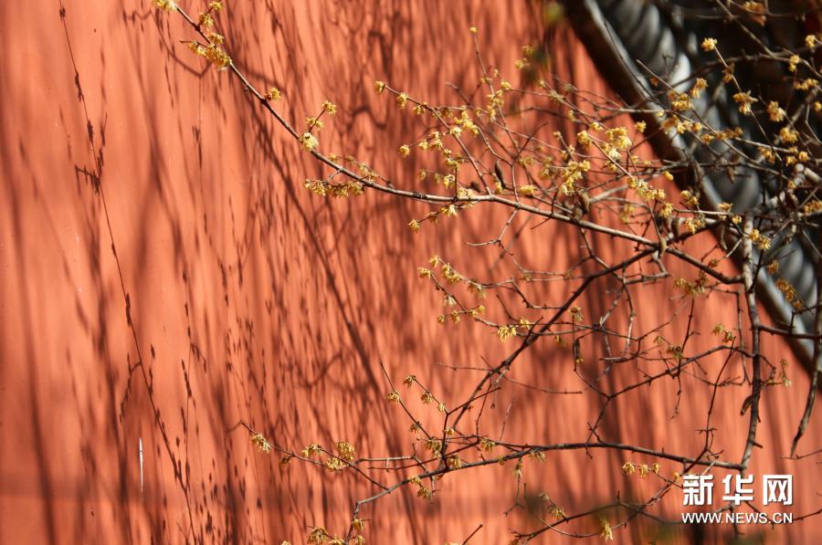 1月20日,南京明孝陵景区的腊梅与红墙相映成趣。当日是“大寒”节气。新华社发(孙忠南 摄)