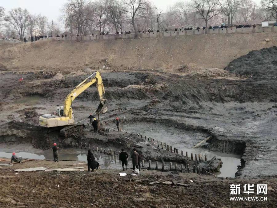 1月29日拍摄的大运河河北泊头段古沉船发掘现场。新华社发