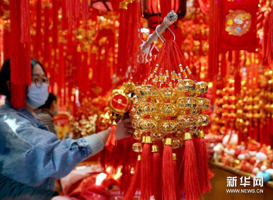 2月6日,市民在豫园挑选节庆饰品。新华社记者 刘颖 摄