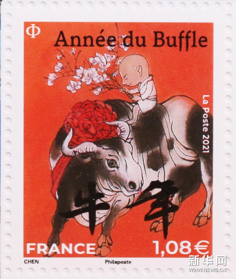 这是2月6日在法国巴黎举行的发行仪式上拍摄的牛年生肖纪念邮票。新华社记者 高静 摄