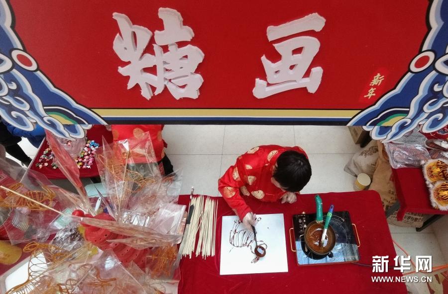 2月8日,民间艺人在迁安市“非遗年味市集”上制作糖画。为迎接新春佳节,河北省迁安市近期举办了“非遗年味市集”,汇聚皮影、吹糖人、糖画、捏面人等丰富多彩的非遗文化项目和民俗文化展示,让市民感受传统文化魅力和极具特色的“年味大餐”。据介绍,市集将持续到元宵节。新华社发