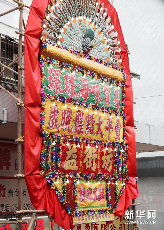 大型花牌矗立在香港街头(1月31日摄)。新华社记者 李钢 摄