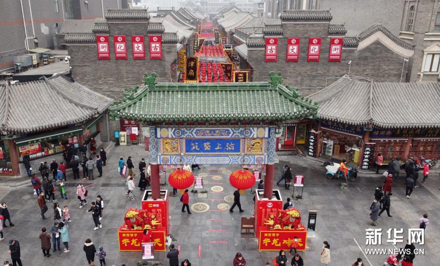 这是2月13日拍摄的天津古文化街(无人机照片)。新华社记者 赵子硕摄