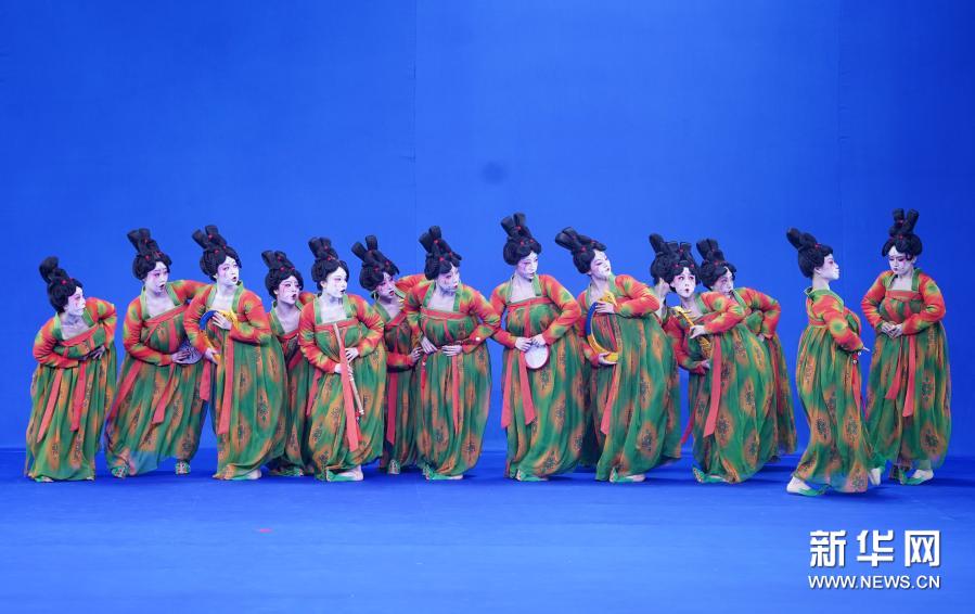 这是河南省春晚节目《唐宫夜宴》录制时的画面(2月1日摄)。新华社发