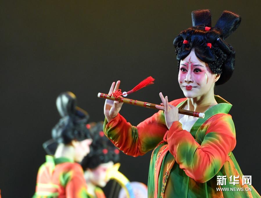 演员在第十二届中国舞蹈“荷花奖”古典舞终评演出上表演《唐宫夜宴》(2020年10月16日摄)。新华社记者李嘉南摄