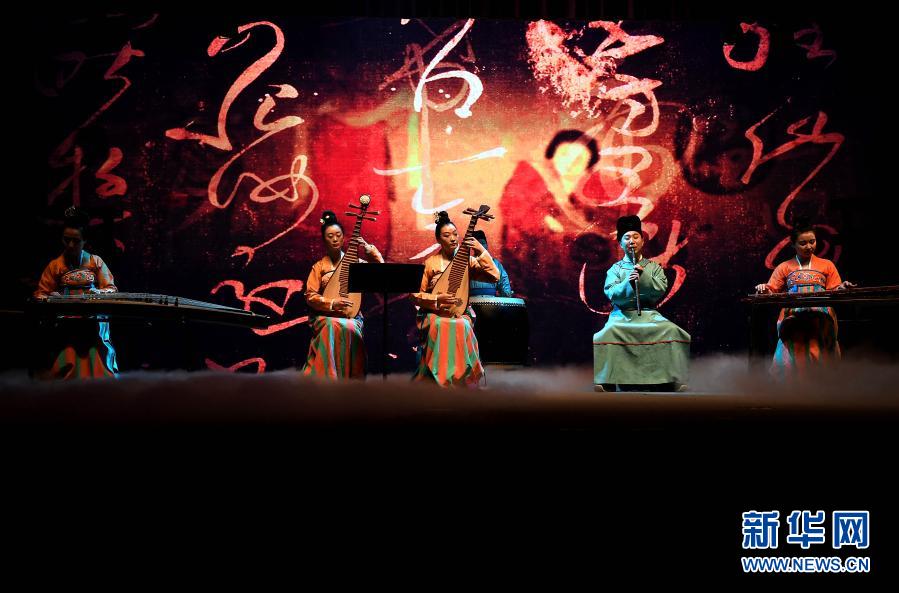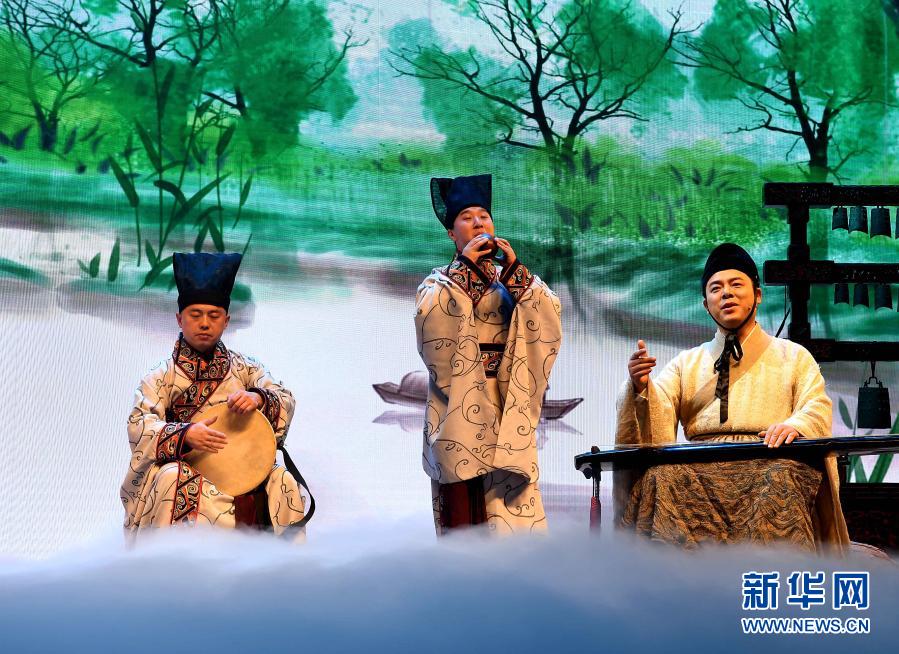 河南博物院华夏古乐团的演员们在为观众演奏(2020年1月1日摄)。新华社记者 李安 摄
