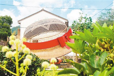 城杨村村民俞振飞创制的“大草帽”休憩亭