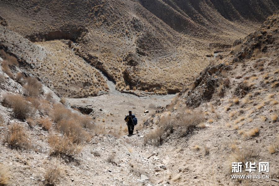 3月22日,杜成峰在甘肃省张掖市肃南裕固族自治县榆木山考察岩画途中。新华社记者 冯亚松 摄