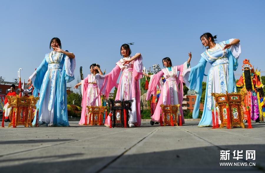3月23日,贵州省龙里县第三中学师生在排练龙里太平花灯戏。新华社记者 杨文斌 摄